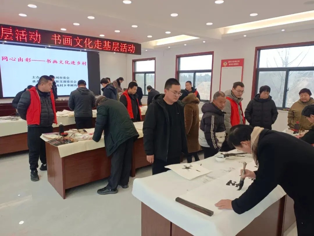 12月23日,民盟郑州市委会组织盟员书画家到荥阳市高村乡枣树沟村开展“同心出彩·书画文化进乡村”活动,民盟郑州市委会、荥阳市委统战部等50余人参加,9位盟员书画家现场创作出120余幅书画作品,受到村民充分好评。