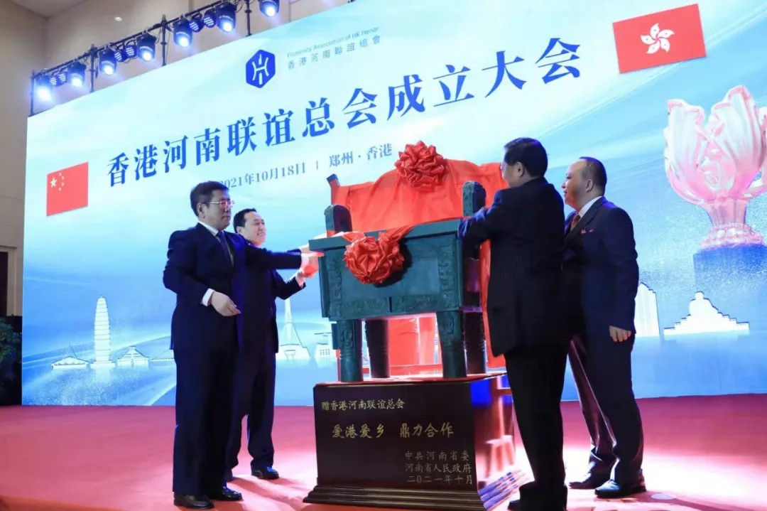 10月18日,香港河南联谊总会成立大会举行,全国政协副主席梁振英在香港会场出席活动,省长王凯在郑州会场致辞,并为纪念鼎揭彩。