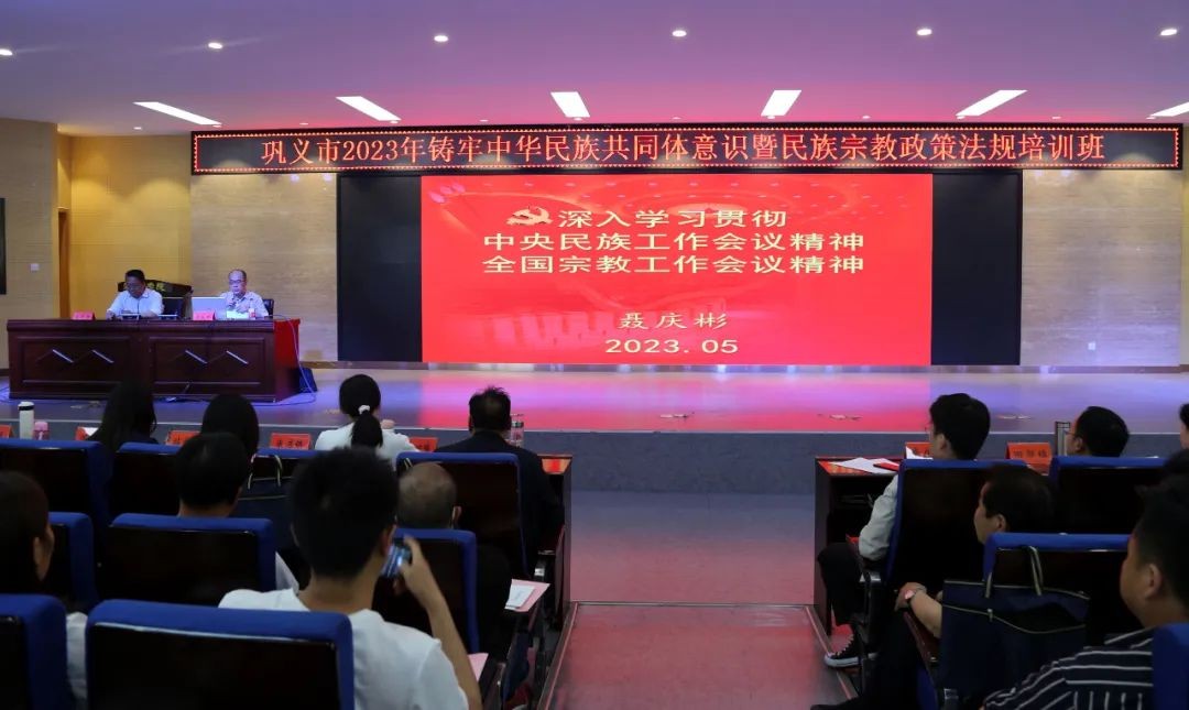为提升基层民族宗教干部政策理论水平和工作能力,5月13日至14日,巩义市举办2023年铸牢中华民族共同体意识暨民族宗教政策法规培训班,各镇(街道)助理员、村(社区)协理员和市委统战部全体人员共350余人参加培训。