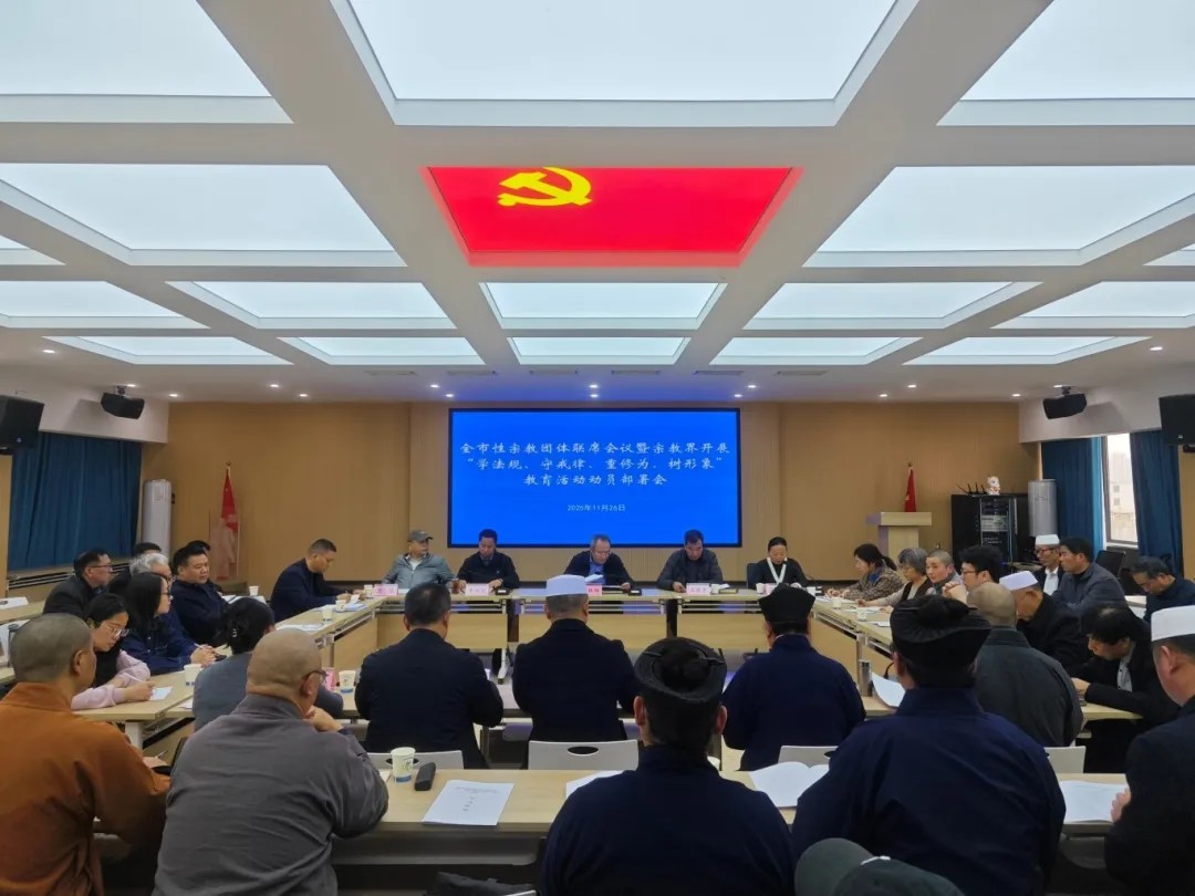 11月26日,郑州市全市性宗教团体联席会议暨宗教界开展“学法规、守戒律、重修为、树形象”教育活动动员部署会召开。市民族宗教局党组书记、局长康红阳参加。会议深入学习贯彻党的二十届四中全会精神,对全市宗教界开展“学法规、守戒律、重修为、树形象”教育活动进行安排部署。