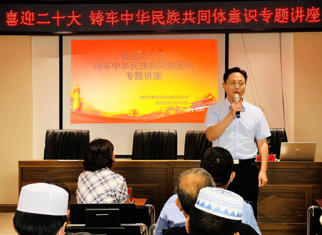 “非常感谢市委党校统战理论教研部、区委统战部,为我们带来这么专业生动的讲座,让我们进一步体会到民族团结工作的重要,帮助我们更好开展工作!”管城区北下街街道办事处党工委书记海彦玲高兴地说。9月16日,“喜迎二十大 铸牢中华民族共同体意识”讲座在管城区北下街成功举办。这是管城区委统战部和郑州市委党校统战理论教研部开展“校地结合、共建共促”工作的又一创新举措。