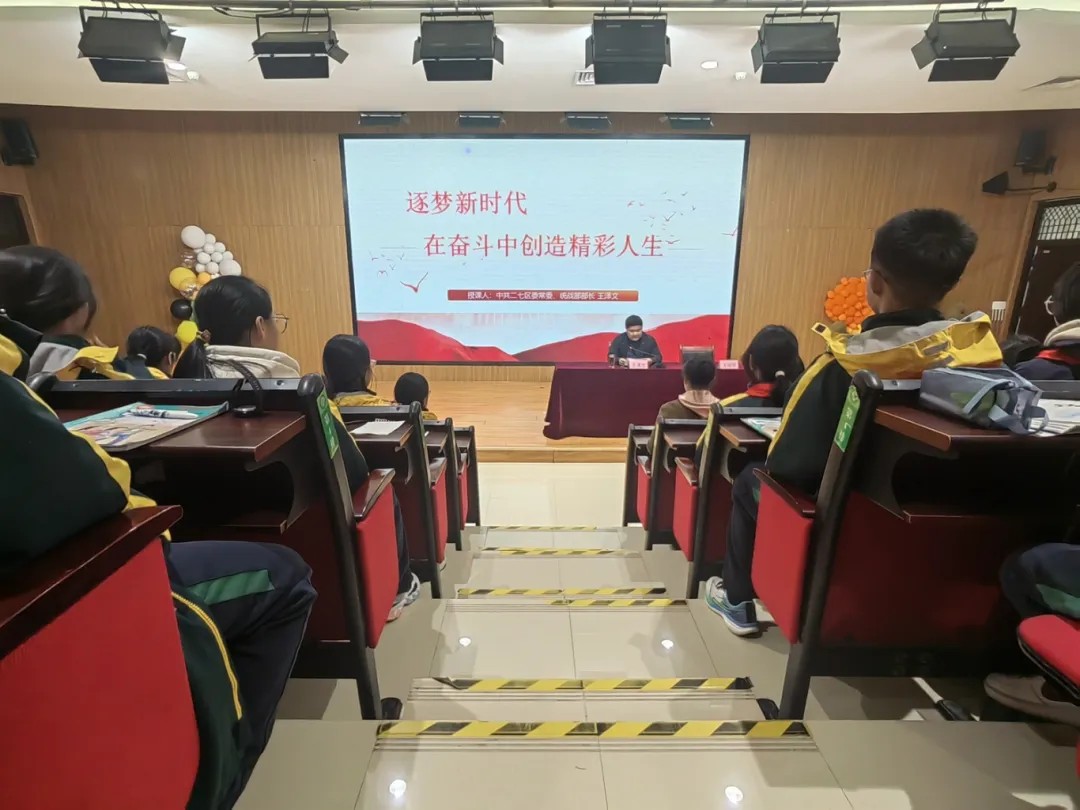 11月25日,二七区委常委、统战部部长王泽文到二七区绿地爱华学校,以《逐梦新时代,在奋斗中创造精彩人生》为题,为师生们讲授思政课。