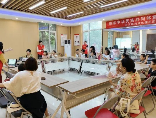 二七区民宗局在长江路街道玫瑰花园社区开展“端午祝安康 巧手做香囊”铸牢中华民族共同体意识主题活动,家长和孩子们通过观看小视频和讲解详细了解端午节的由来,在志愿者与孩子们的互动问答中加深对传统文化的印象。
