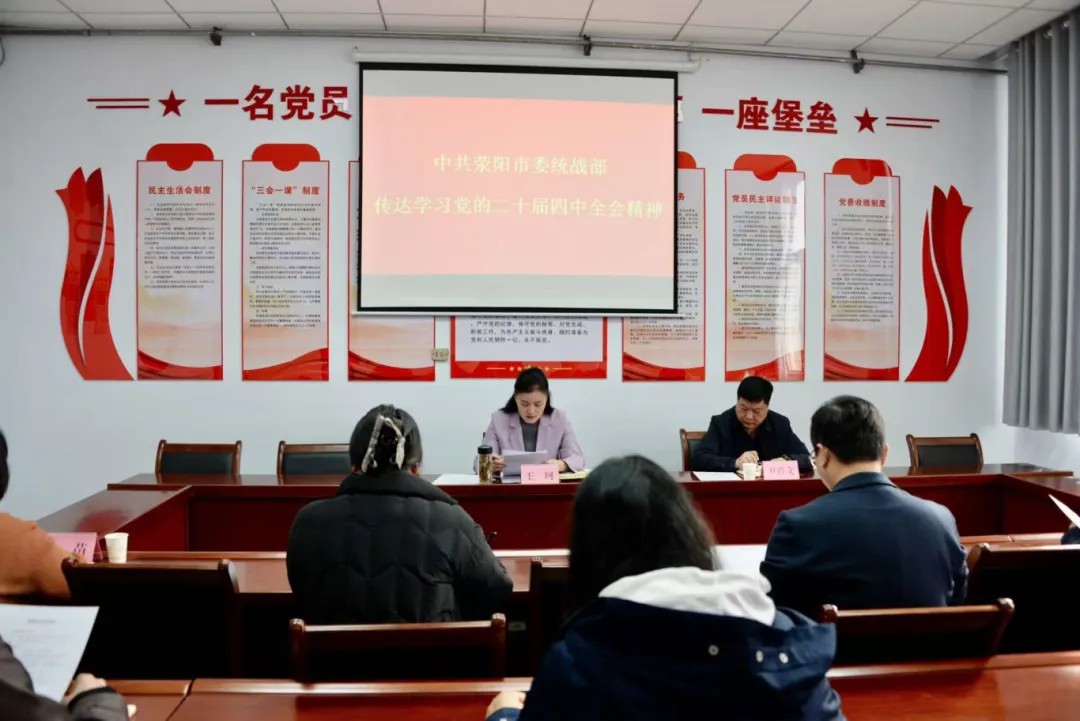10月27日,荥阳市委统战部召开专题会议传达学习党的二十届四中全会精神,研究部署学习贯彻工作。会议强调,要提高政治站位,将学习贯彻全会精神作为当前和今后一个时期统一战线各领域的重大政治任务,认真抓好理论学习、宣传宣讲、干部培训等工作,推动全会精神入脑入心、走深走实。