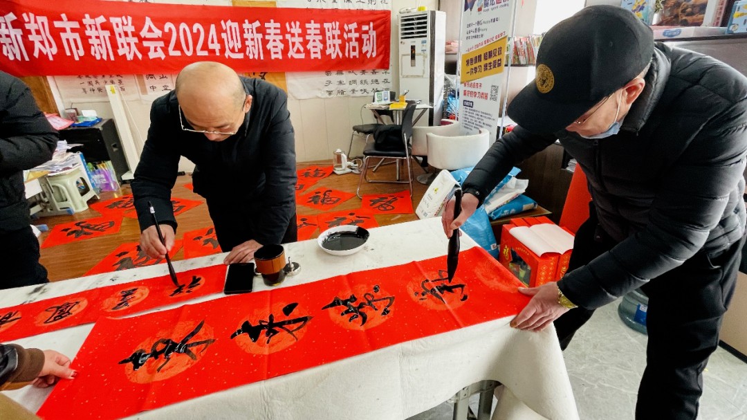 新郑市新的社会阶层人士联谊会在新华路街道毛园社区居委会、金岭社区居委会、新郑市图书馆组织开展“迎新春 写春联 送春联”主题活动。