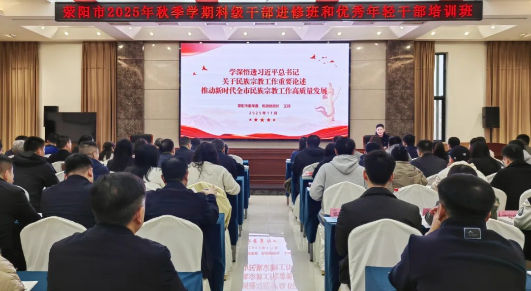 11月7日,荥阳市委常委、统战部部长王珂到荥阳市委党校,为2025年度秋季学期主体班学员作民族宗教工作专题辅导讲座,系统解读习近平总书记关于加强和改进民族工作的重要思想、习近平总书记关于宗教工作的重要论述,为学员筑牢思想理论根基,同时结合地方实际,聚焦“怎么看”“怎么办”“怎么干”,就抓好全市民族宗教工作提出具体路径。